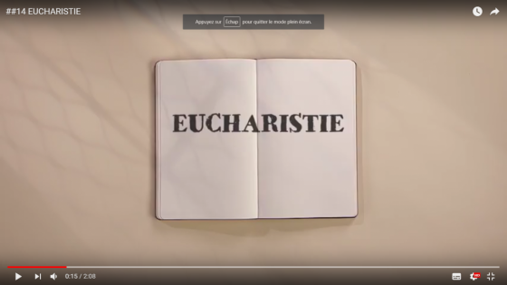 L’Eucharistie (petite vidéo explicative). Cette petite vidéo explicative de l’Eucharistie (durée: 2 minutes 8 sec.) est très bien faite. Elle fait partie d’une série intitulée: « Les Tablettes de la foi ». En voici la transcription: