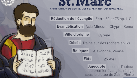 Saint Marc selon une tradition qui a survécu à la critique moderne, a été le compagnon de mission des deux apôtres. Celui qui devait devenir l’auteur de l’Évangile qui porte son nom, doit être identifié avec Jean Marc, l’auxiliaire de Barnabé et Paul; il les aide dans le voyage missionnaire décrit par les Actes des apôtres (Ac 13-14). Saint Pierre1, pour sa part, parle de Marc en employant un mot affectueux dans la conclusion d’une lettre: Marc, mon fils (1 P 5, 13).